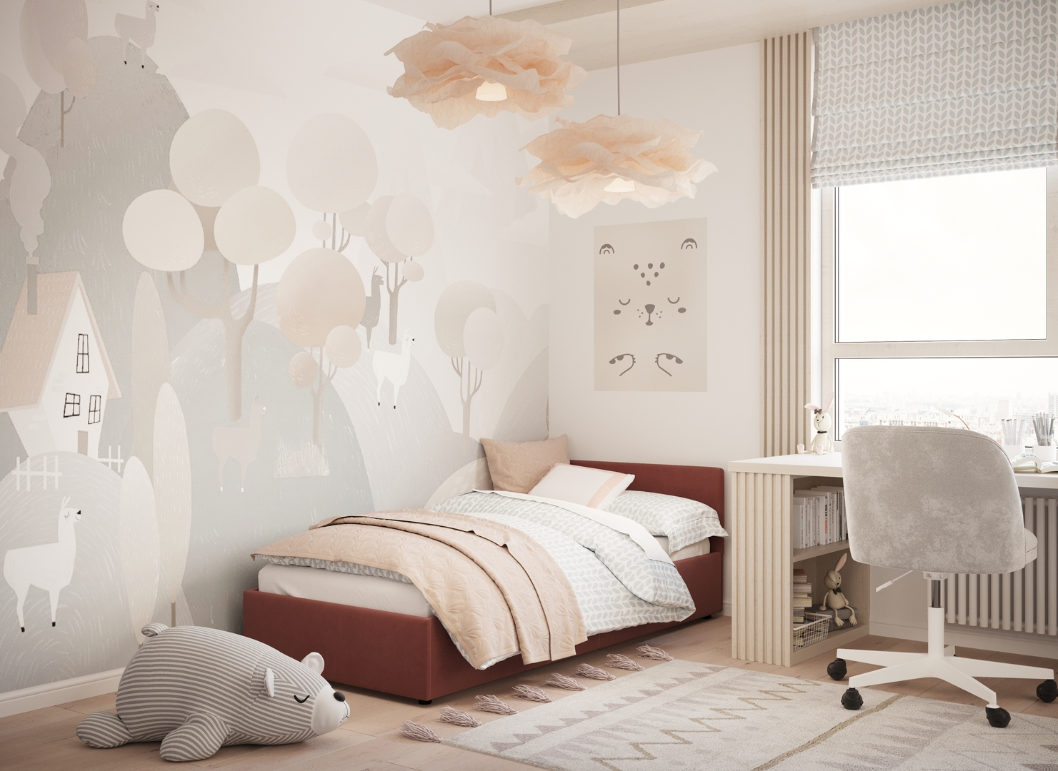 Создать гармоничный интерьер и завершить образ спальни помогут дополнительные аксессуары, например: тумбы, банкетки, подушки.