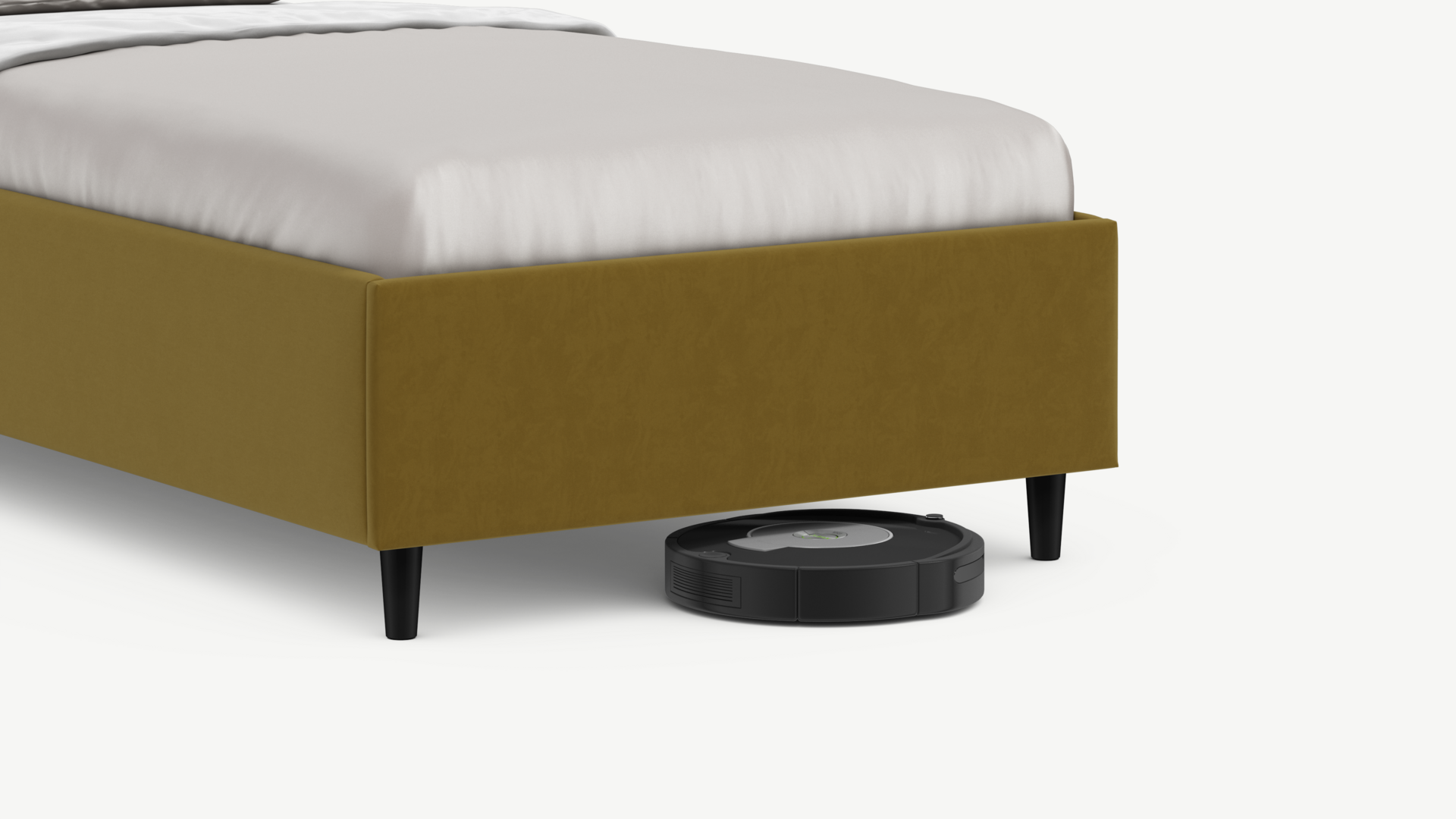 Благодаря высоким опорам под кроватью проходит робот-пылесос и легко проводится влажная уборка, что обеспечивает чистоту и порядок в доме.