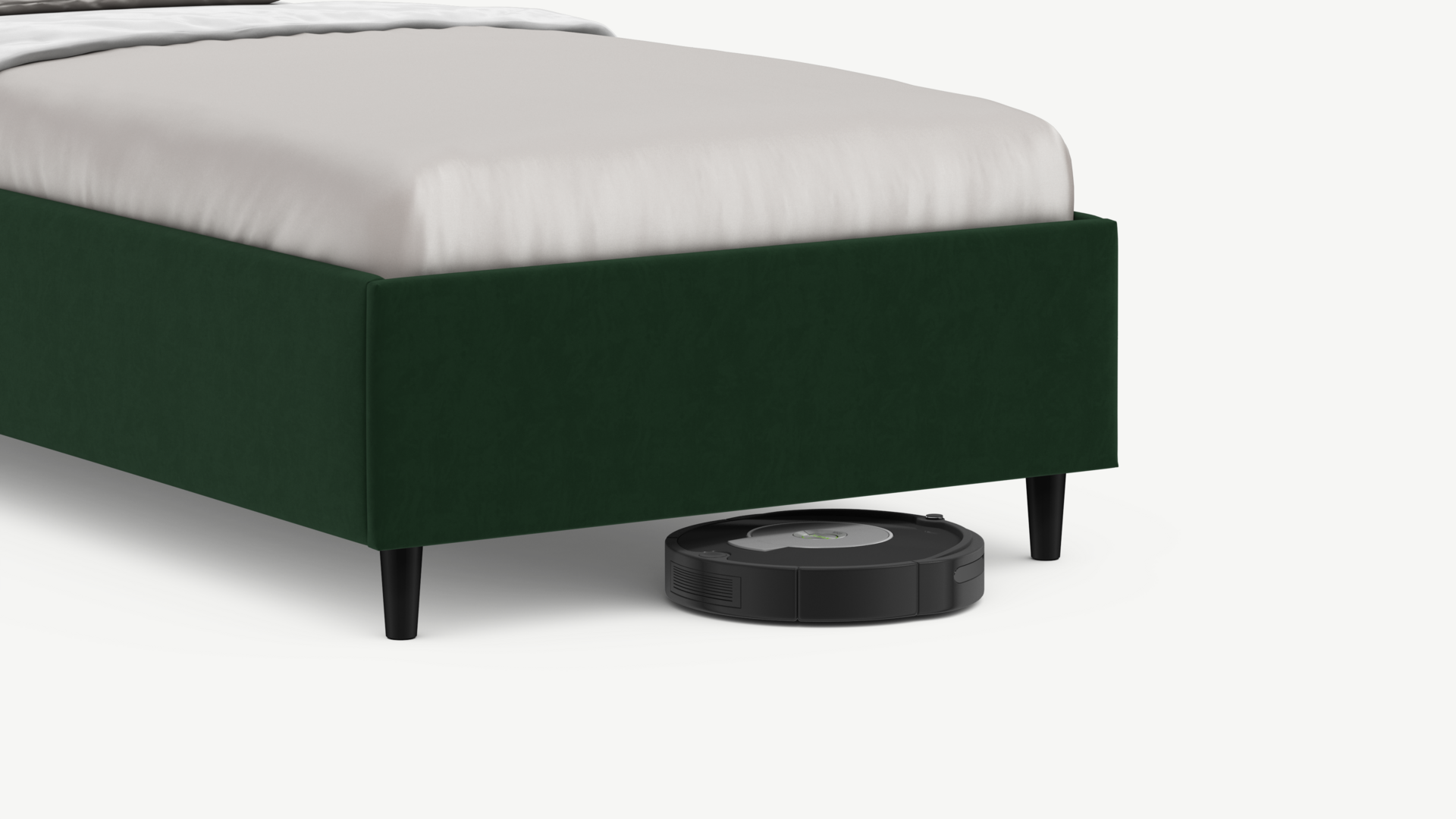 Благодаря высоким опорам под кроватью проходит робот-пылесос и легко проводится влажная уборка, что обеспечивает чистоту и порядок в доме.