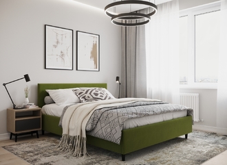Фактура обивочного материала подбирается дизайнерами с учетом технологических и стилевых особенностей кровати.
