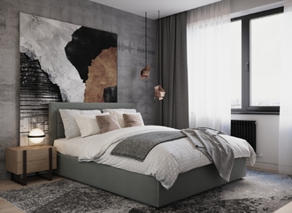 Стежка помещена в центр изголовья и обрамлена, словно картина. Объемные царги становятся гармоничным дополнением образа и завершают цельную фигуру кровати.