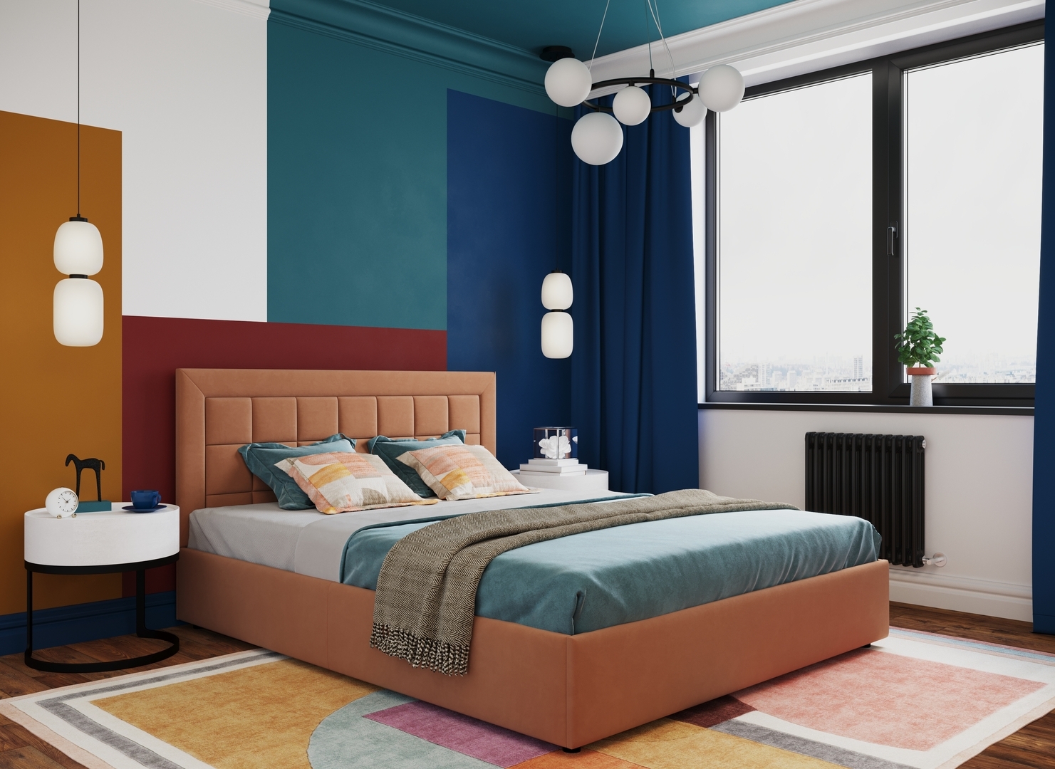 Создать гармоничный интерьер и завершить образ спальни помогут дополнительные аксессуары, например: тумбы, банкетки, подушки.