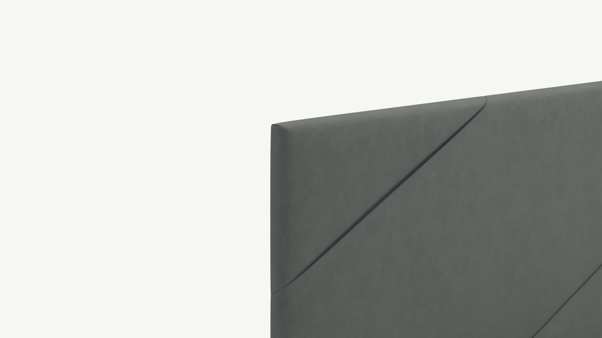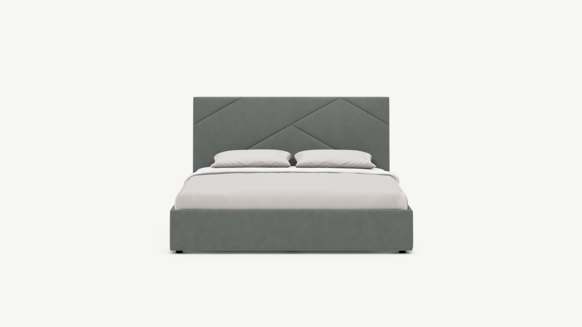 MOON FAMILY 1257 привлекает внимание оригинальным исполнением: широкие полосы ткани эффектно пересекают периметр изголовья, создавая на нем графический орнамент. Лаконичные формы объемных царг создают единый гармоничный образ и фокусируют внимание на центральном текстурном элементе кровати.