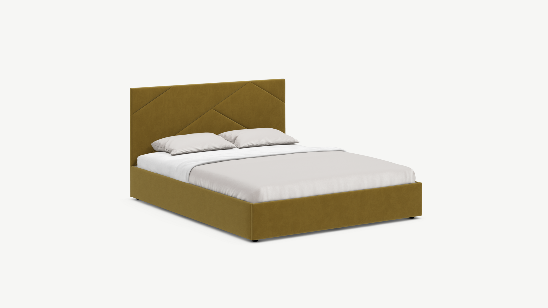 Кровать с выбором опорMOON FAMILY 1257 привлекает внимание оригинальным исполнением: широкие полосы ткани эффектно пересекают периметр изголовья, создавая на нем графический орнамент. Элегантным и практичным акцентом служат скрытые карманы, расположенные по его углам. Лаконичные формы объемных царг создают единый гармоничный образ и фокусируют внимание на центральном текстурном элементе кровати.