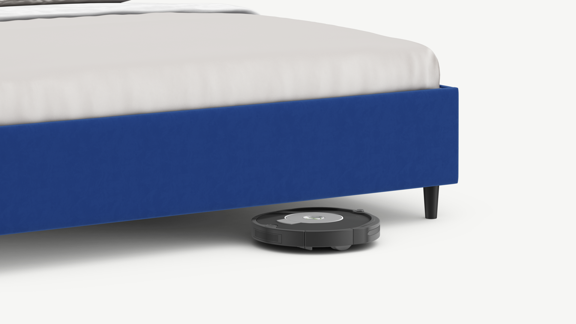 Благодаря высоким опорам под кроватью проходит робот-пылесос и легко проводится влажная уборка, что обеспечивает чистоту и порядок в доме.