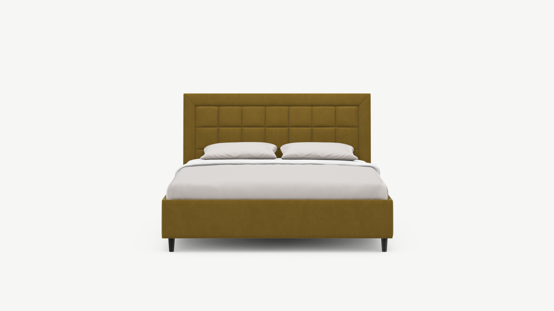 Стежка помещена в центр изголовья и обрамлена, словно картина. Объемные царги завершают цельную фигуру кровати и становятся гармоничным дополнением ее образа.