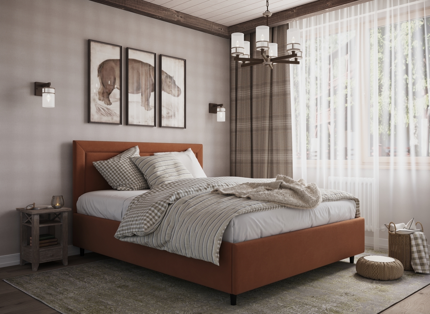 Создать гармоничный интерьер и завершить образ спальни помогут дополнительные аксессуары, например: тумбы, банкетки, подушки.