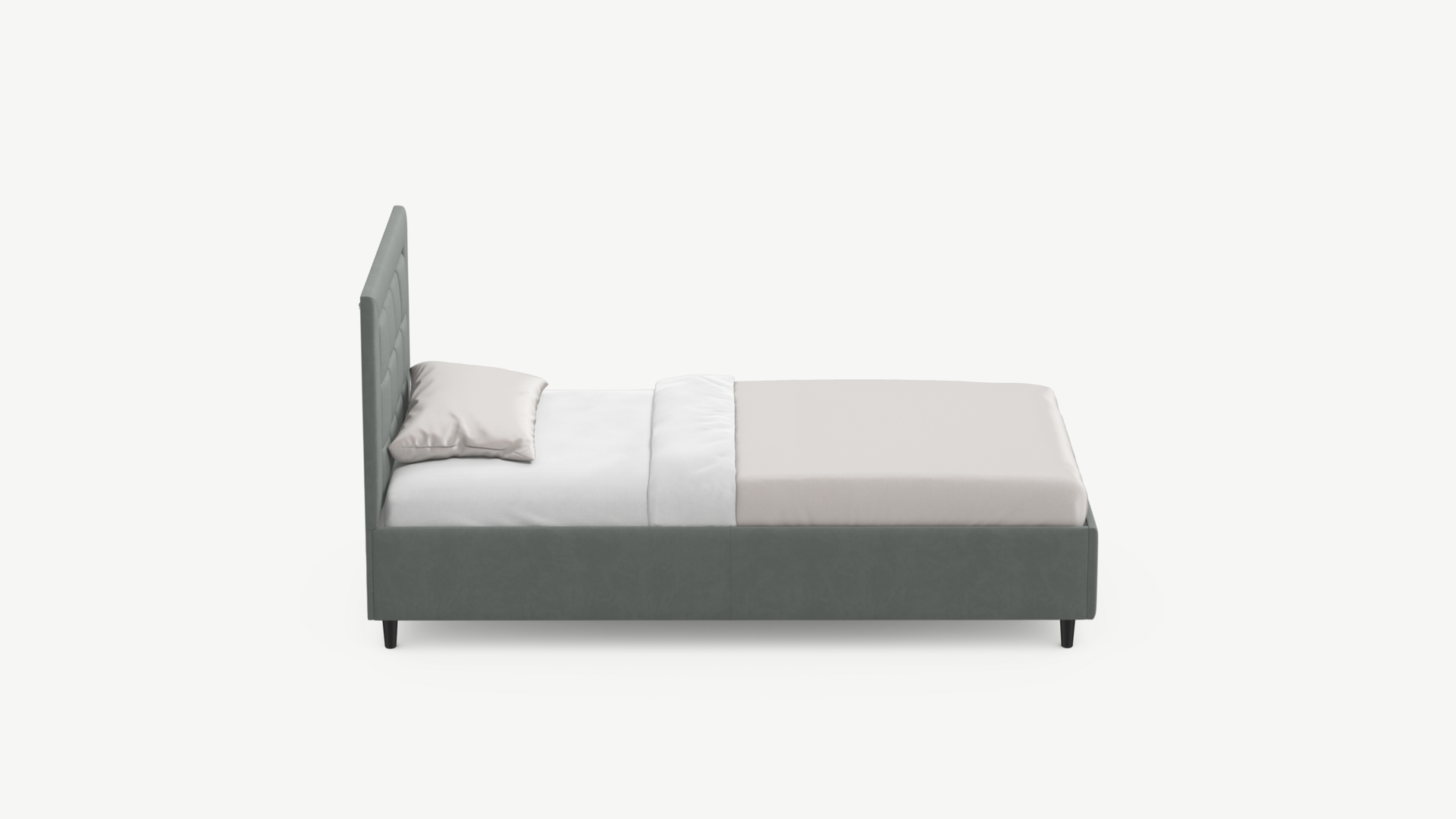 Изголовье декорировано рельефным рисунком стежки в крупный квадрат, получившим особую фактуру за счет глубины шва.
