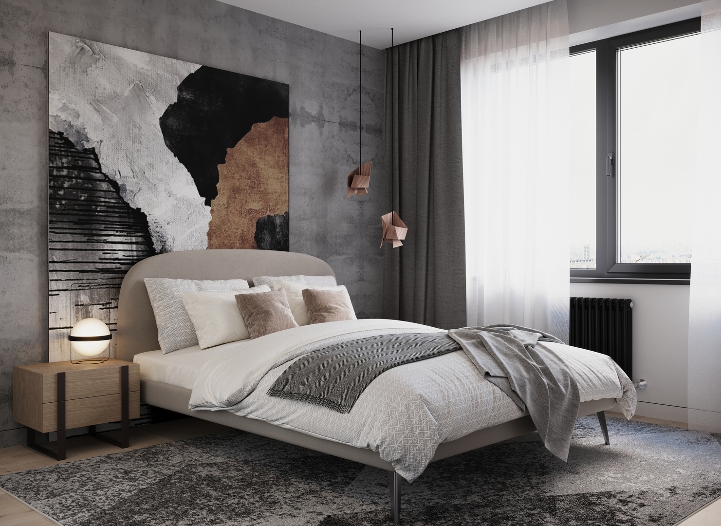 Создать гармоничный интерьер и завершить образ спальни помогут дополнительные аксессуары, например: тумбы, банкетки, подушки.
