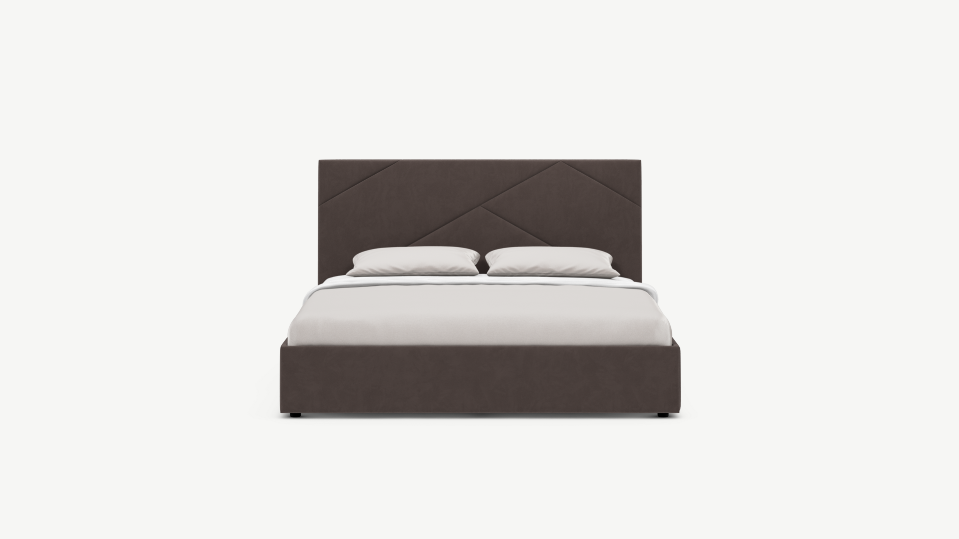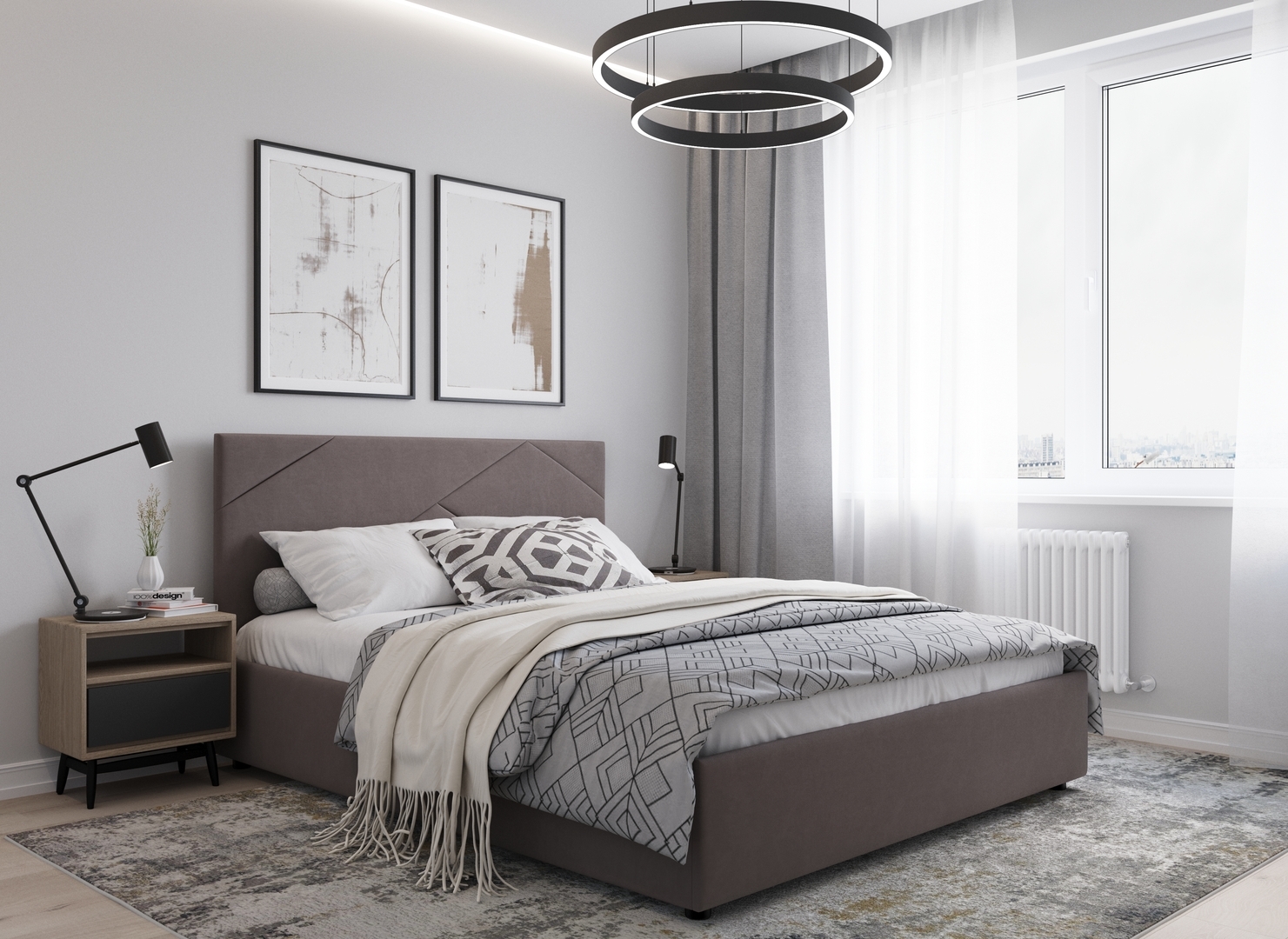 Кровать с подъёмным механизмом с выбором опорMOON FAMILY 1257 привлекает внимание оригинальным исполнением: широкие полосы ткани эффектно пересекают периметр изголовья, создавая на нем графический орнамент. Лаконичные формы объемных царг создают единый гармоничный образ и фокусируют внимание на центральном текстурном элементе кровати.