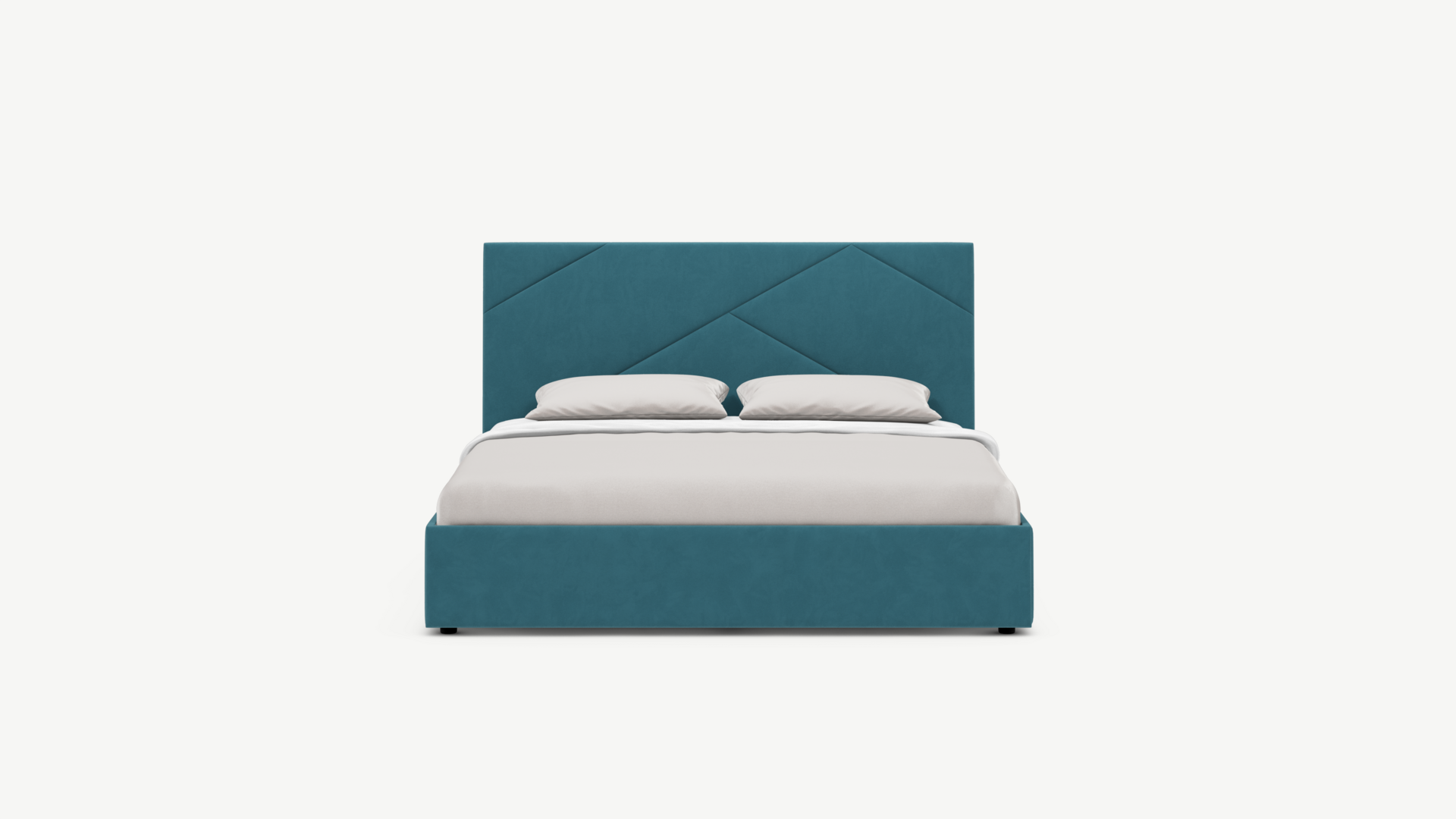 MOON FAMILY 1257 привлекает внимание оригинальным исполнением: широкие полосы ткани эффектно пересекают периметр изголовья, создавая на нем графический орнамент. Лаконичные формы объемных царг создают единый гармоничный образ и фокусируют внимание на центральном текстурном элементе кровати.