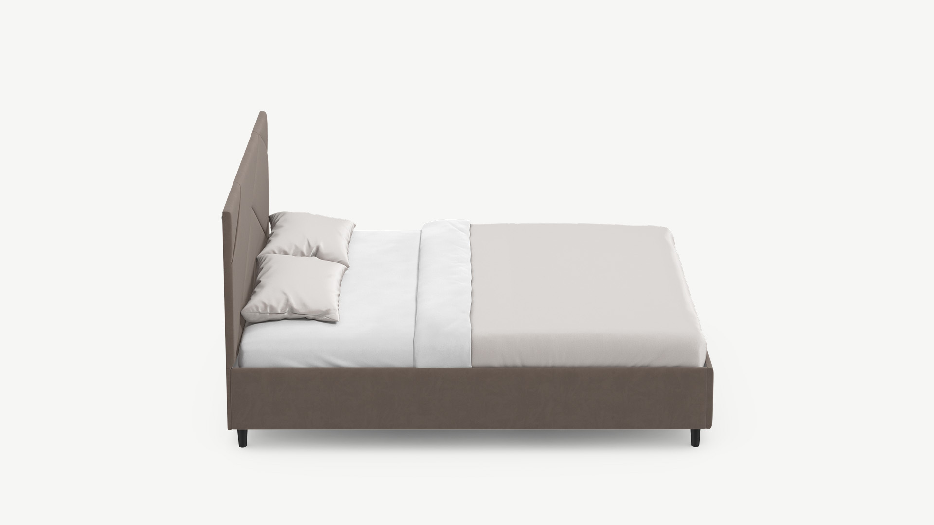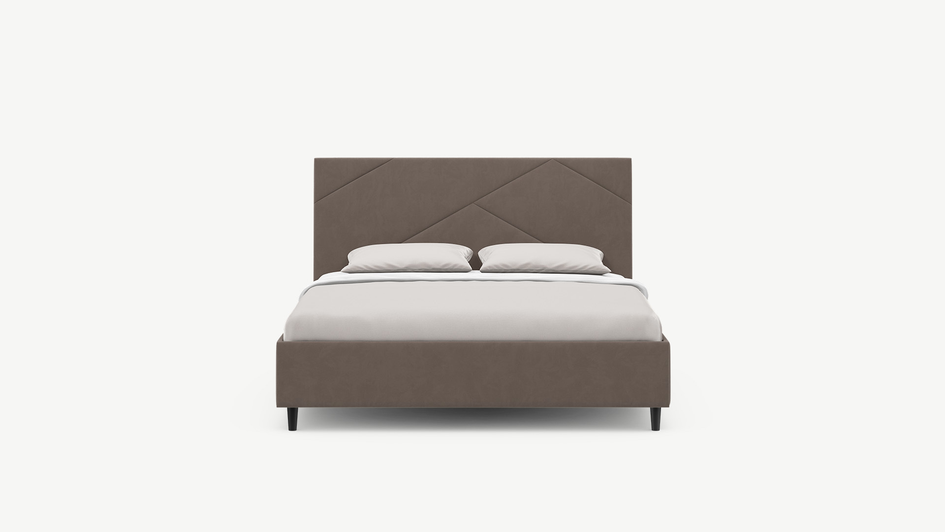 MOON FAMILY 1257 привлекает внимание оригинальным исполнением: широкие полосы ткани эффектно пересекают периметр изголовья, создавая на нем графический орнамент. Лаконичные формы объемных царг создают единый гармоничный образ и фокусируют внимание на центральном текстурном элементе кровати.