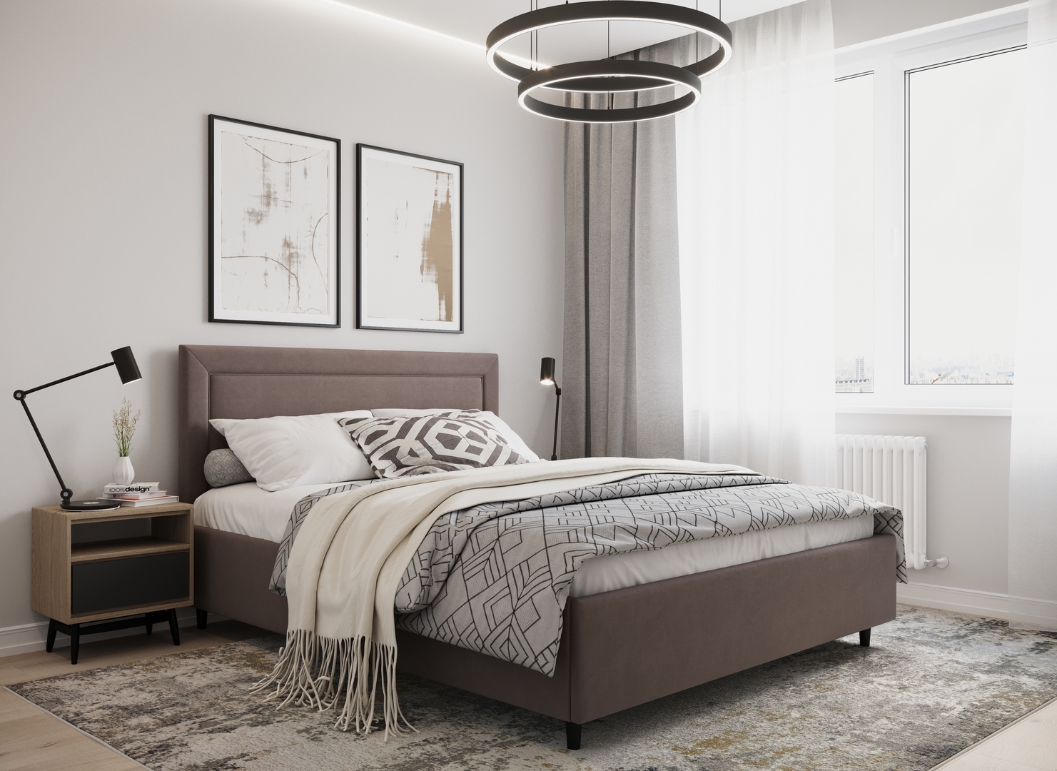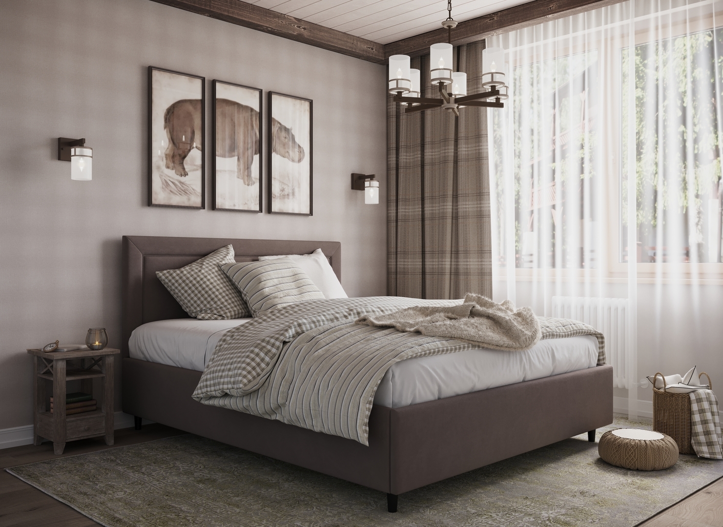 Создать гармоничный интерьер, а также целостный образ спальни помогут дополнительные аксессуары - например, тумбы, банкетки, подушки.