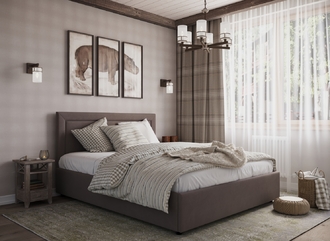 Фактура обивочного материала подбирается дизайнерами с учетом технологических и стилевых особенностей кровати.
