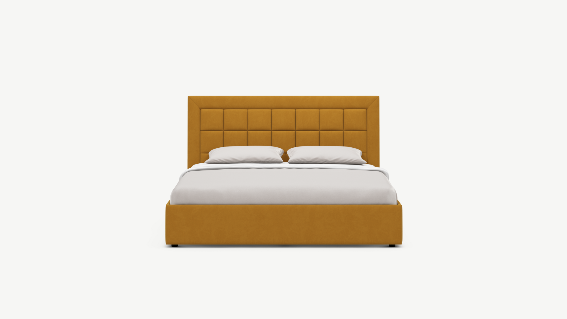 Стежка помещена в центр изголовья и обрамлена, словно картина. Объемные царги становятся гармоничным дополнением образа и завершают цельную фигуру кровати.