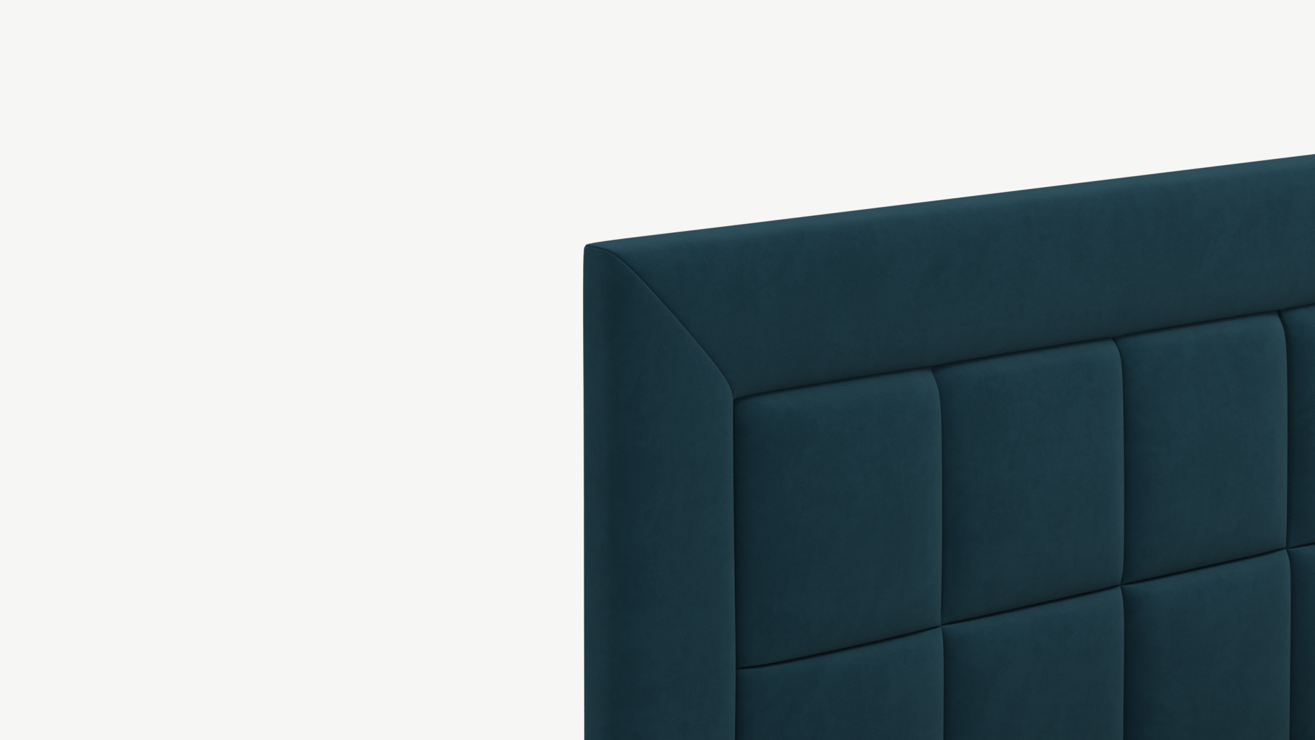 Изголовье декорировано рельефным рисунком стежки в крупный квадрат, получившим особую фактуру за счет глубины шва.