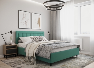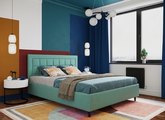 Стежка помещена в центр изголовья и обрамлена, словно картина. Объемные царги завершают цельную фигуру кровати и становятся гармоничным дополнением ее образа.