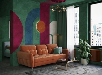 Наши дизайнеры рекомендуют велюры. Сложная цветовая палитра станет отличным решением «Ар-деко», монохромная гамма поддержит эстетику «Лофт», светлые цвета впишут диван в пространство «Сканди». Для интерьеров, собранных в cовременном стиле, палитра максимально широка, Вы можете выбрать практически любой понравившийся Вам цвет.