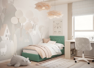 Фактура обивочного материала подбирается дизайнерами с учетом технологических и стилевых особенностей кровати.
