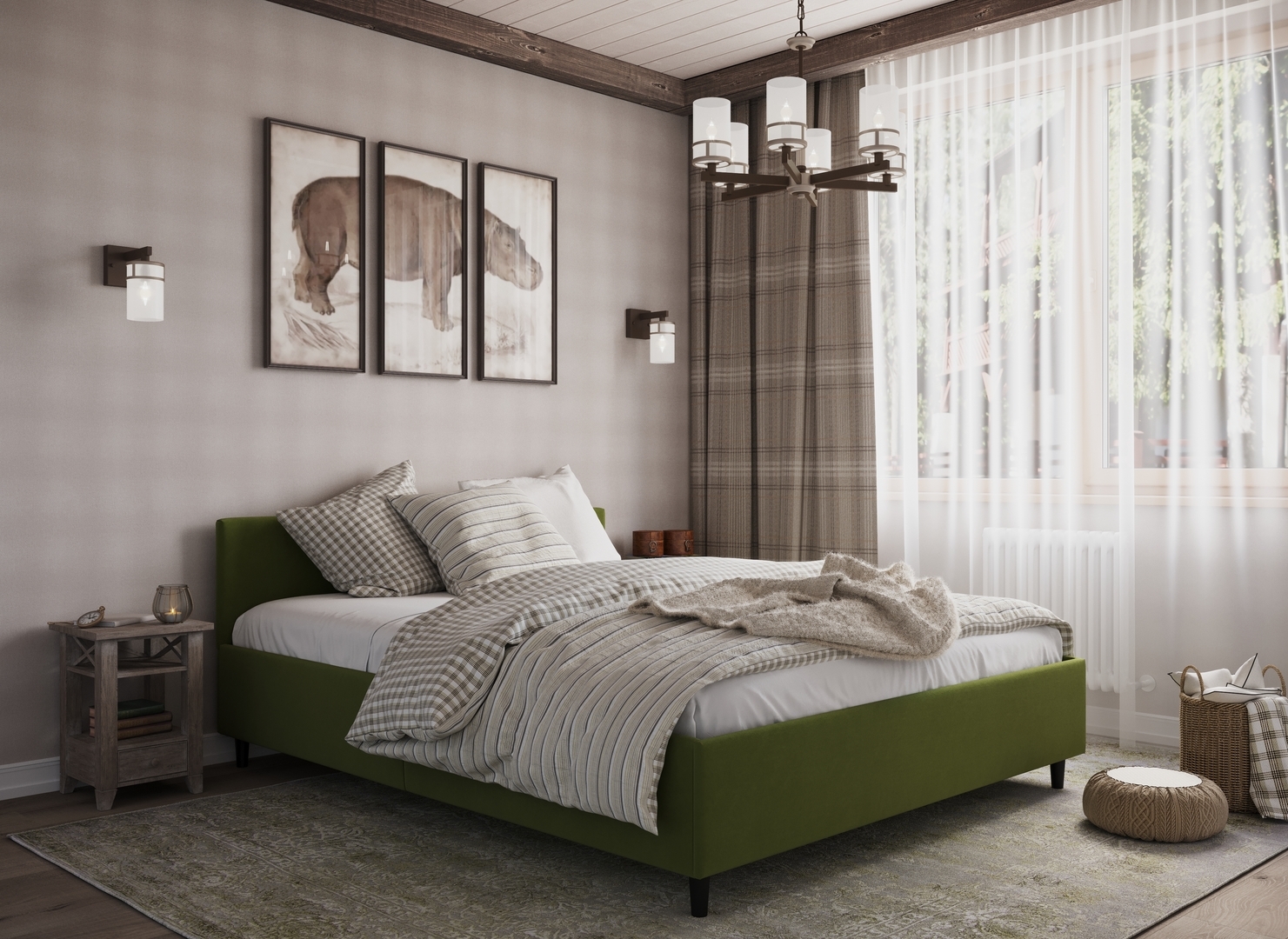 Создать гармоничный интерьер и завершить образ спальни помогут дополнительные аксессуары, например: тумбы, банкетки, подушки.