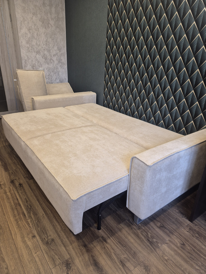Приобрели диван, модель 005, давно присматривались к ней, привезли диван быстро. Приобрели диван в Ставрополе в ТЦ Северный. Диван очень комфортный, удобно мыть и пылесосить, за счет высоких ножек. У дивана глубокая посадка что позволяет спать не раскладывая его. Цвет ткани - спокойный.