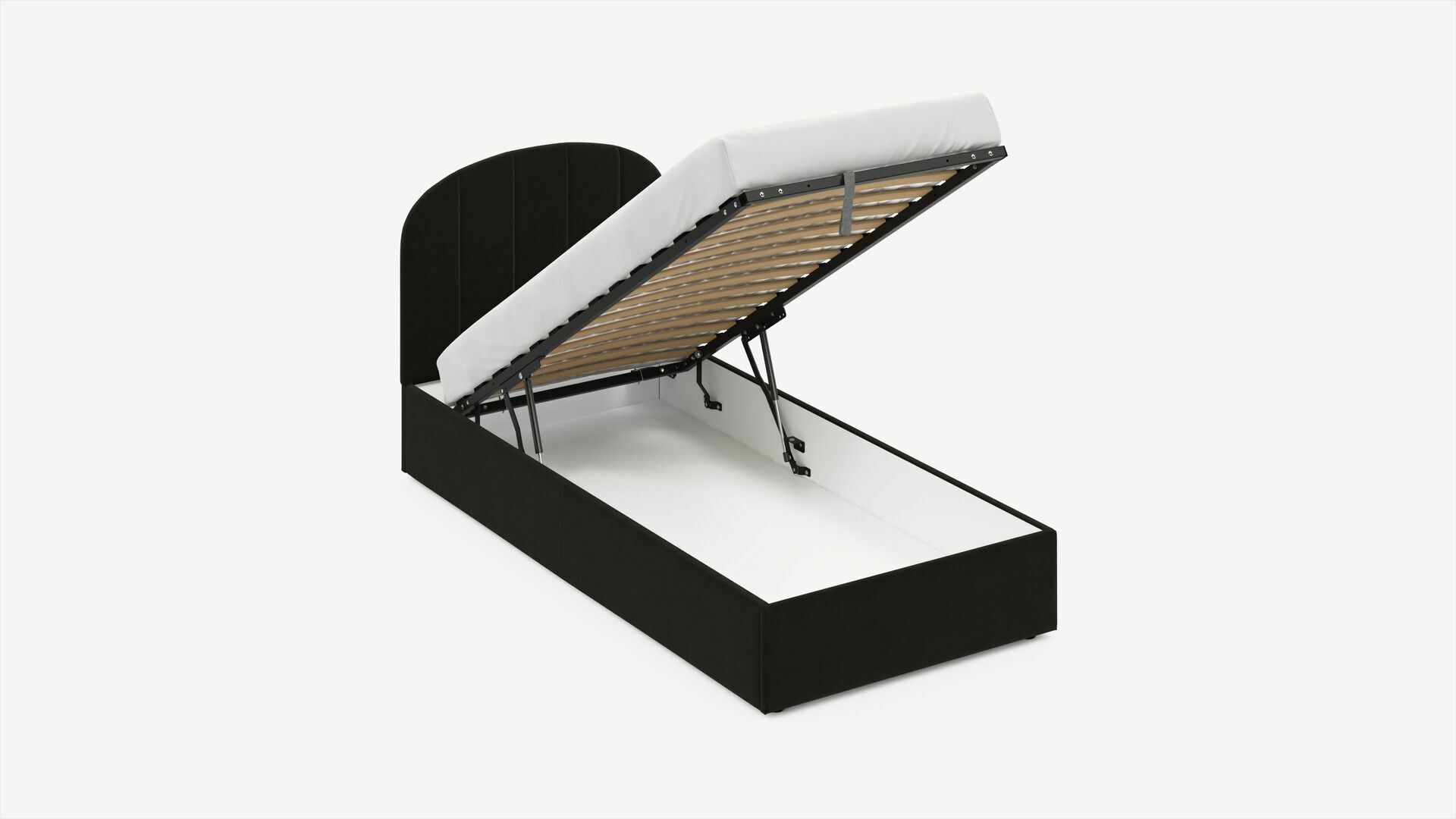 • Скрытая под основанием вместительная емкость без внутренних перегородок позволяет использовать всю площадь подкроватного пространства для хранения вещей.