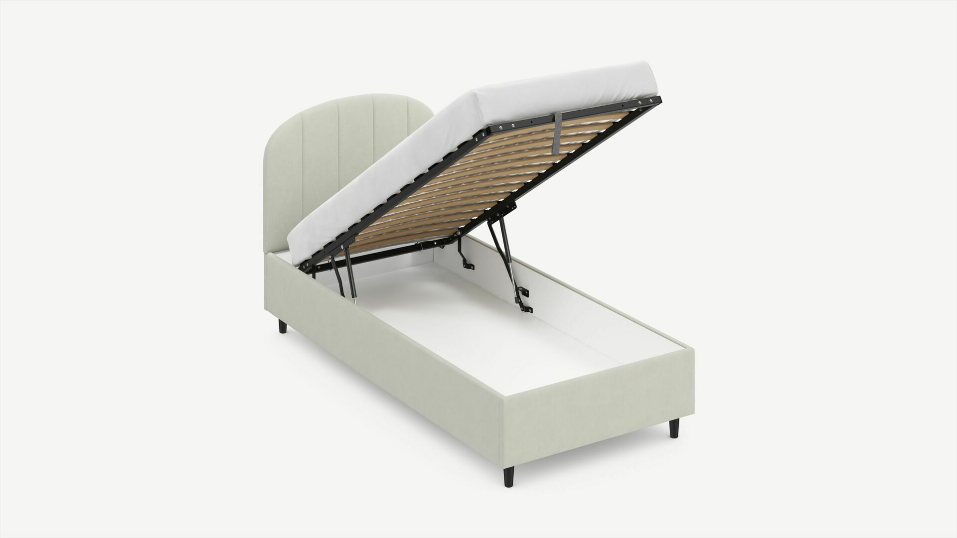 • Скрытая под основанием вместительная емкость без внутренних перегородок позволяет использовать всю площадь подкроватного пространства для хранения вещей.