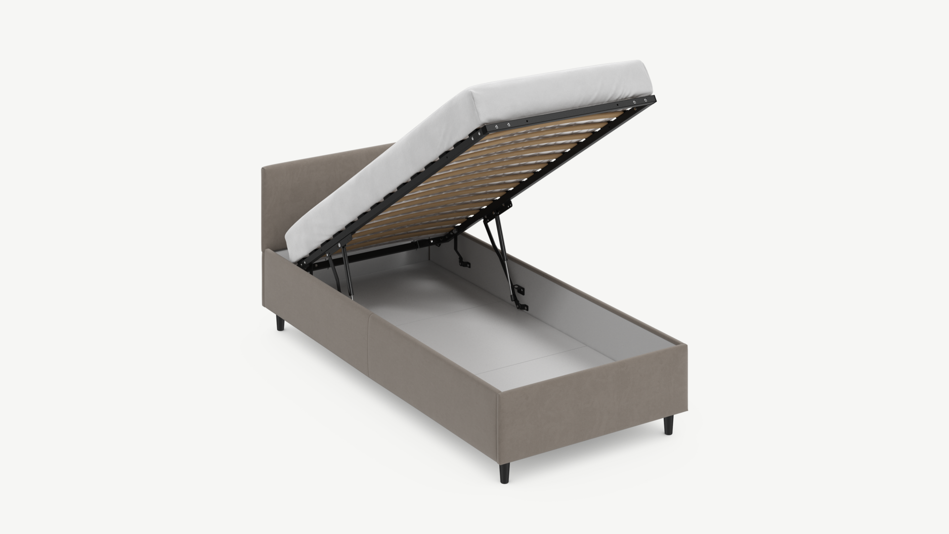 Регулируемый подъемный механизм с газовыми амортизаторами позволяет плавно и бесшумно поднимать и опускать спальное место.