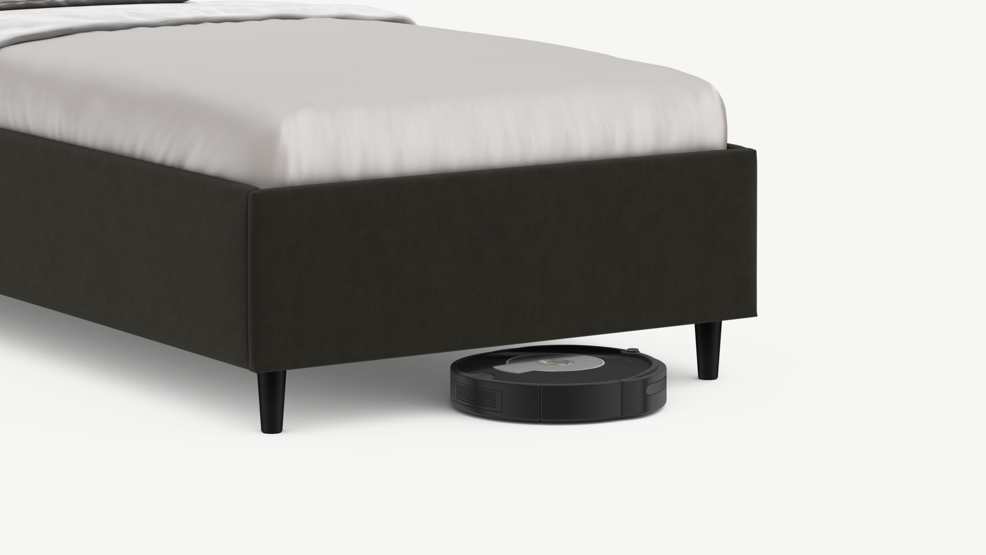 Благодаря высоким опорам под кроватью проходит робот-пылесос и легко проводится влажная уборка, что обеспечивает чистоту и порядок в доме.