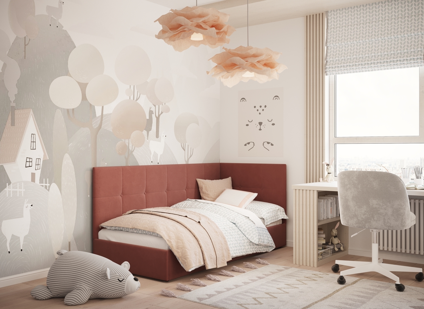 MOON FAMILY 1261 объединяет функциональность и стиль, создавая гармоничное пространство для отдыха и творчества. Кровать доступна в левостороннем и правостороннем исполнении, что позволяет легко адаптировать ее под любые интерьерные особенности.