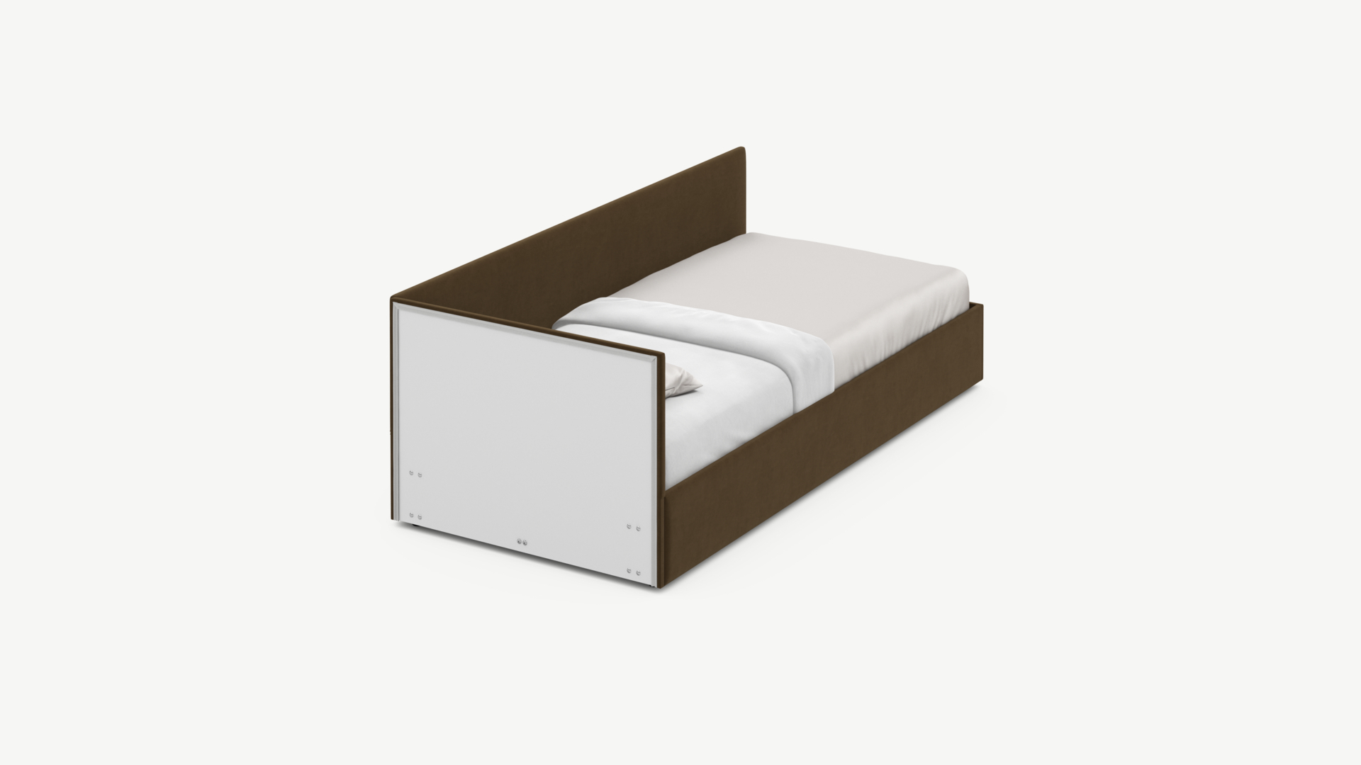 MOON FAMILY 1250 объединяет функциональность и стиль, создавая гармоничное пространство для отдыха и творчества. Кровать доступна в левостороннем и правостороннем исполнении, что позволяет легко адаптировать ее под любые интерьерные особенности.