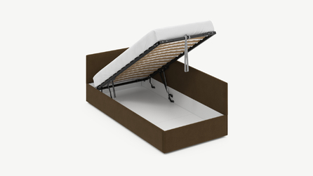 • Скрытая под основанием вместительная емкость без внутренних перегородок позволяет использовать всю площадь подкроватного пространства для хранения вещей.