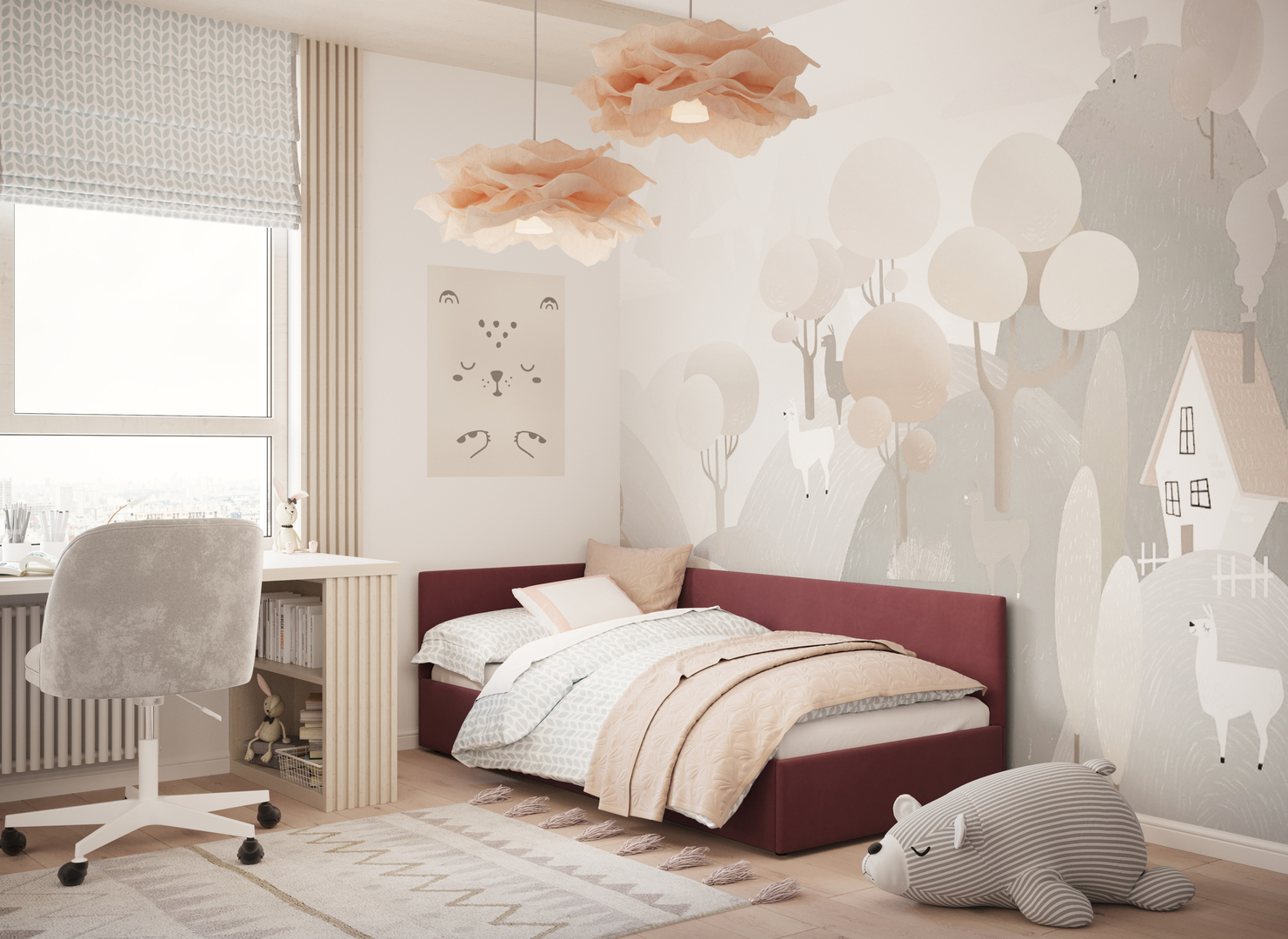 В подростковой комнате эта кровать станет стильным акцентом окружающего интерьера и возьмет на себя роль удобной кушетки для друзей, зашедших в гости.