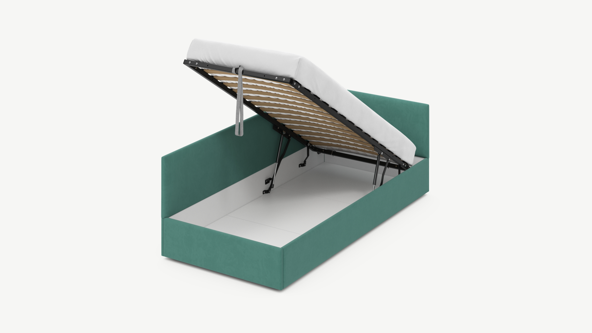 • Скрытая под основанием вместительная емкость без внутренних перегородок позволяет использовать всю площадь подкроватного пространства для хранения вещей.
