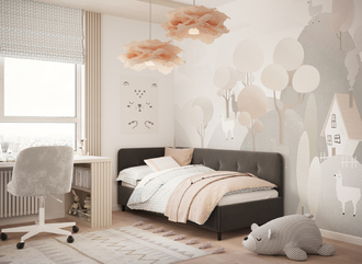 В подростковой комнате эта кровать станет стильным акцентом окружающего интерьера и возьмет на себя роль удобной кушетки для друзей, зашедших в гости.