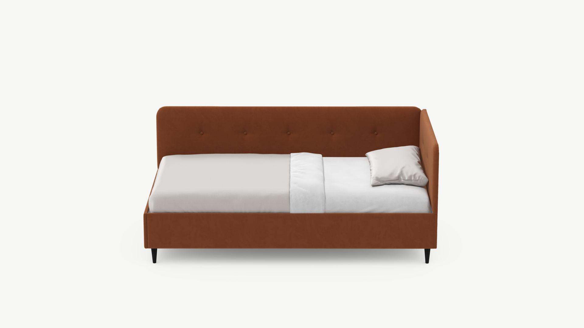 Кровать угловая с подъемным механизмомУгловая односпальная кровать MOON FAMILY 1253 с мягкой спинкой и изголовьем обладает округлыми формами, привносящими в интерьер нотки нежности. Изголовье, украшенное пуговицами, добавляет окружающему пространству шарм и уют. Высокие опоры придают кровати визуальной легкости, а также обеспечивают удобство во время уборки.