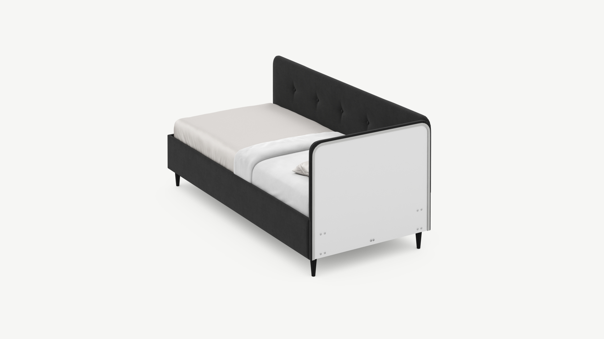 Кровать угловая с подъемным механизмомУгловая односпальная кровать MOON FAMILY 1253 с мягкой спинкой и изголовьем обладает округлыми формами, привносящими в интерьер нотки нежности. Изголовье, украшенное пуговицами, добавляет окружающему пространству шарм и уют. Высокие опоры придают кровати визуальной легкости, а также обеспечивают удобство во время уборки.