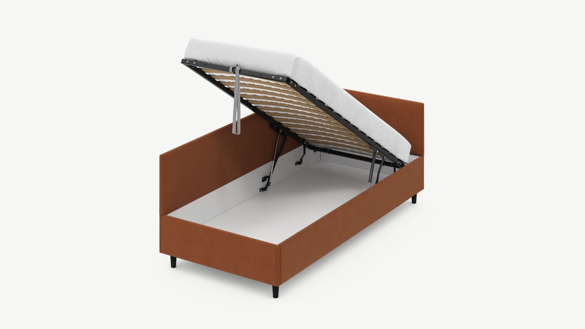 - Скрытая под основанием вместительная емкость без внутренних перегородок позволяет использовать всю площадь подкроватного пространства для хранения вещей.