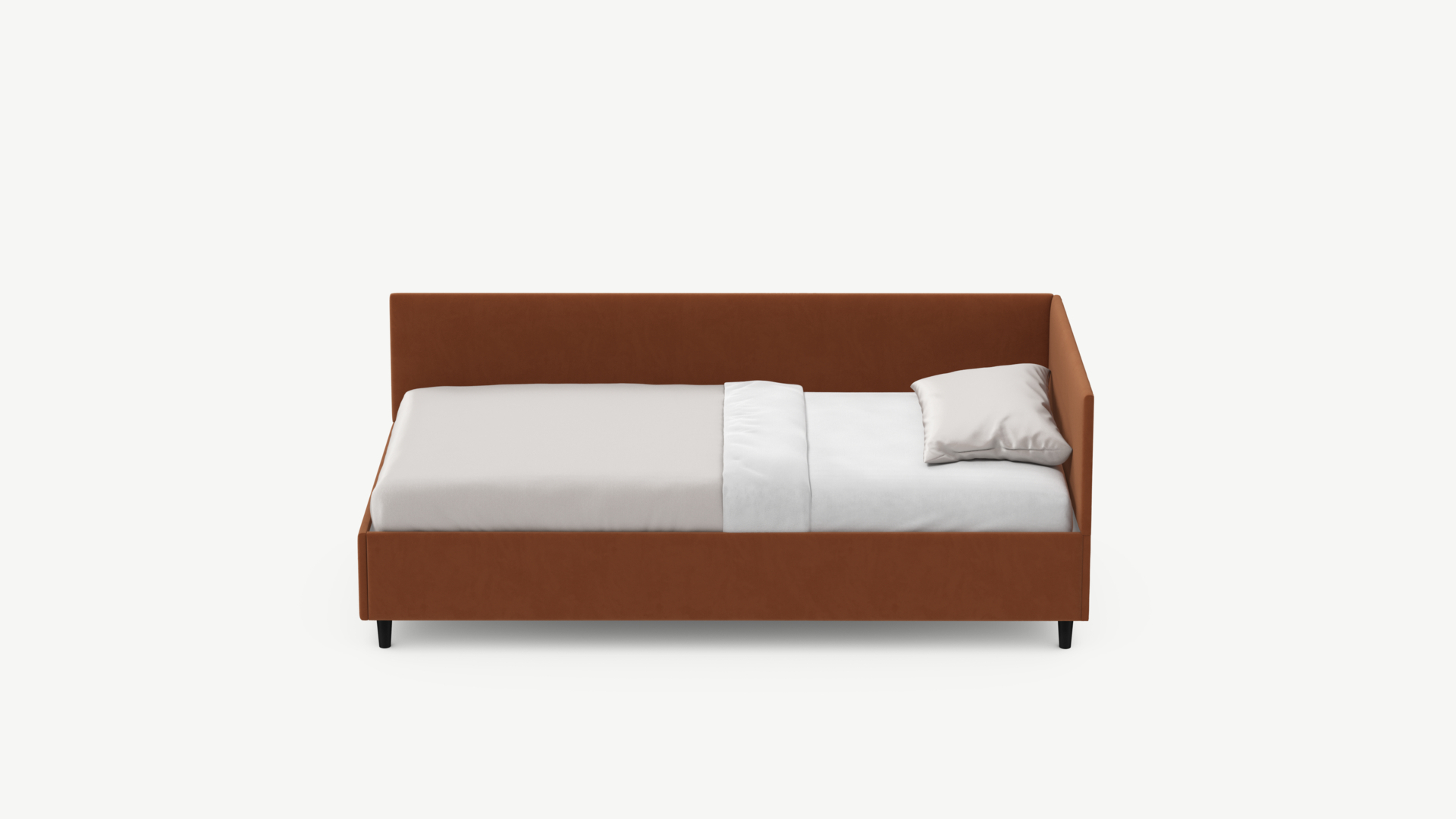 MOON FAMILY 1250 объединяет функциональность и стиль, создавая гармоничное пространство для отдыха и творчества. Кровать доступна в левостороннем и правостороннем исполнении, что позволяет легко адаптировать ее под любые интерьерные особенности.