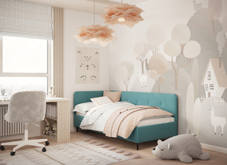 В подростковой комнате эта кровать станет стильным акцентом окружающего интерьера и возьмет на себя роль удобной кушетки для друзей, зашедших в гости.