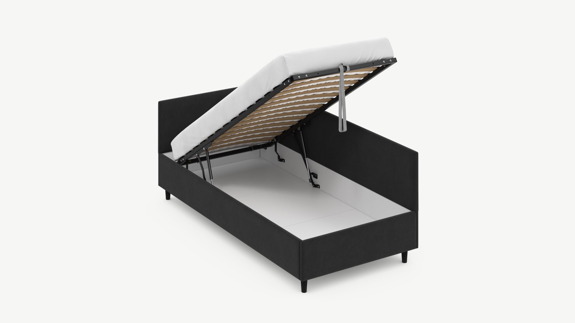 • Скрытая под основанием вместительная емкость без внутренних перегородок позволяет использовать всю площадь подкроватного пространства для хранения вещей.