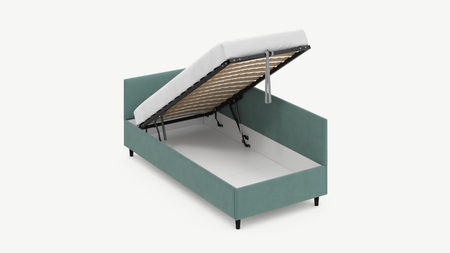 • Скрытая под основанием вместительная емкость без внутренних перегородок позволяет использовать всю площадь подкроватного пространства для хранения вещей.