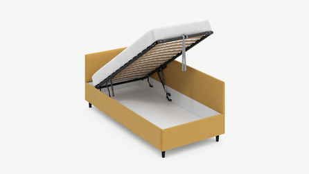 • Скрытая под основанием вместительная емкость без внутренних перегородок позволяет использовать всю площадь подкроватного пространства для хранения вещей.