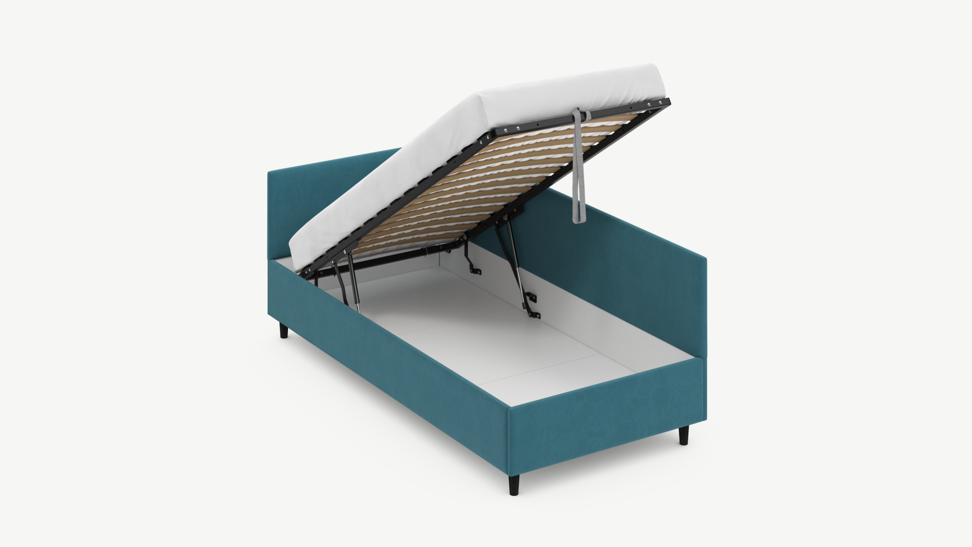 - Скрытая под основанием вместительная емкость без внутренних перегородок позволяет использовать всю площадь подкроватного пространства для хранения вещей.
