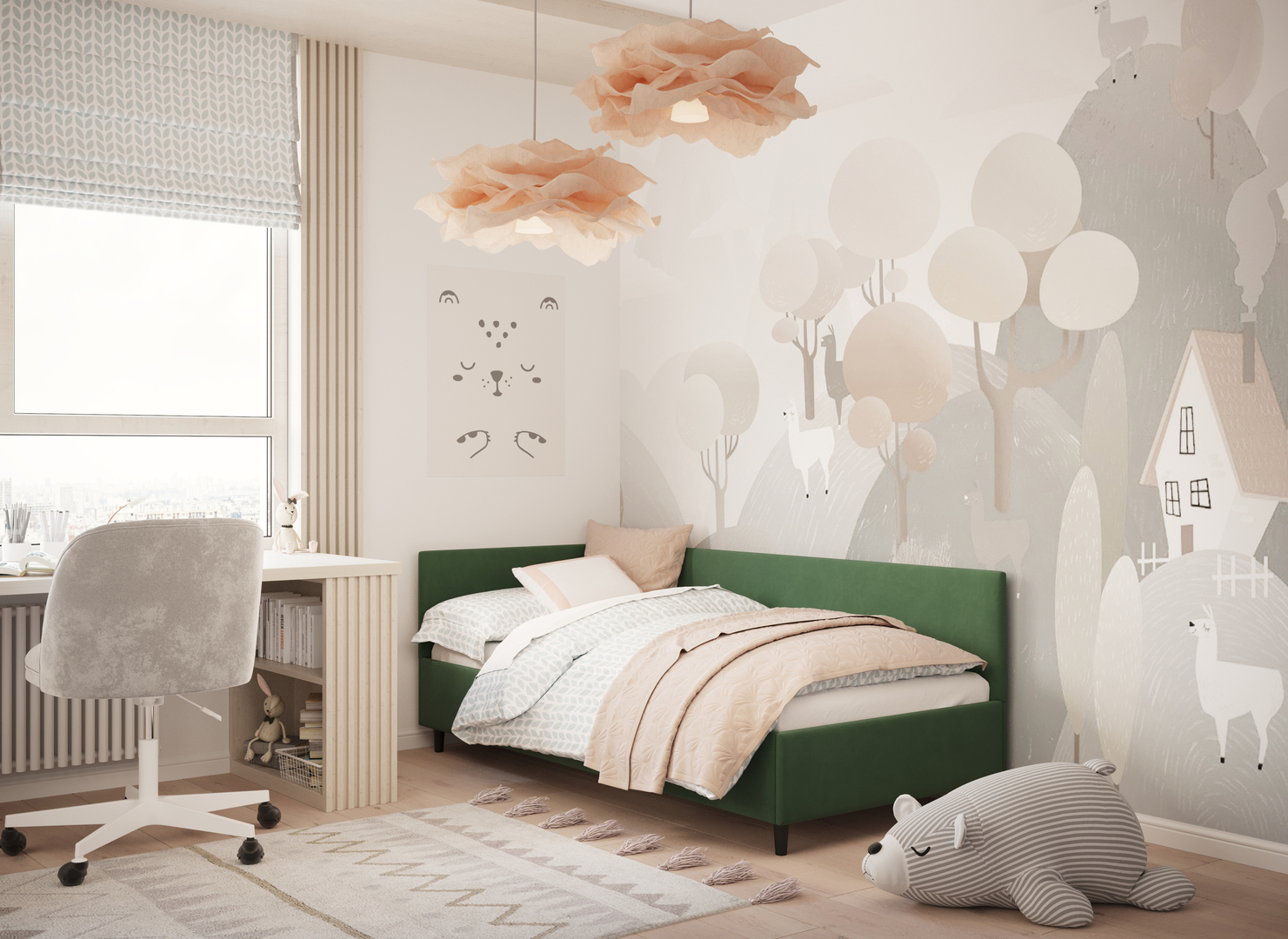 В детской комнате кровать MOON FAMILY 1250 создаст уютное место для безмятежного сна, защищая ребенка от контакта со стеной. Она станет не только удобным пространством для отдыха, но и безопасной зоной для игр, позволяя маленькому исследователю развивать фантазию и радоваться домашним приключениям.
