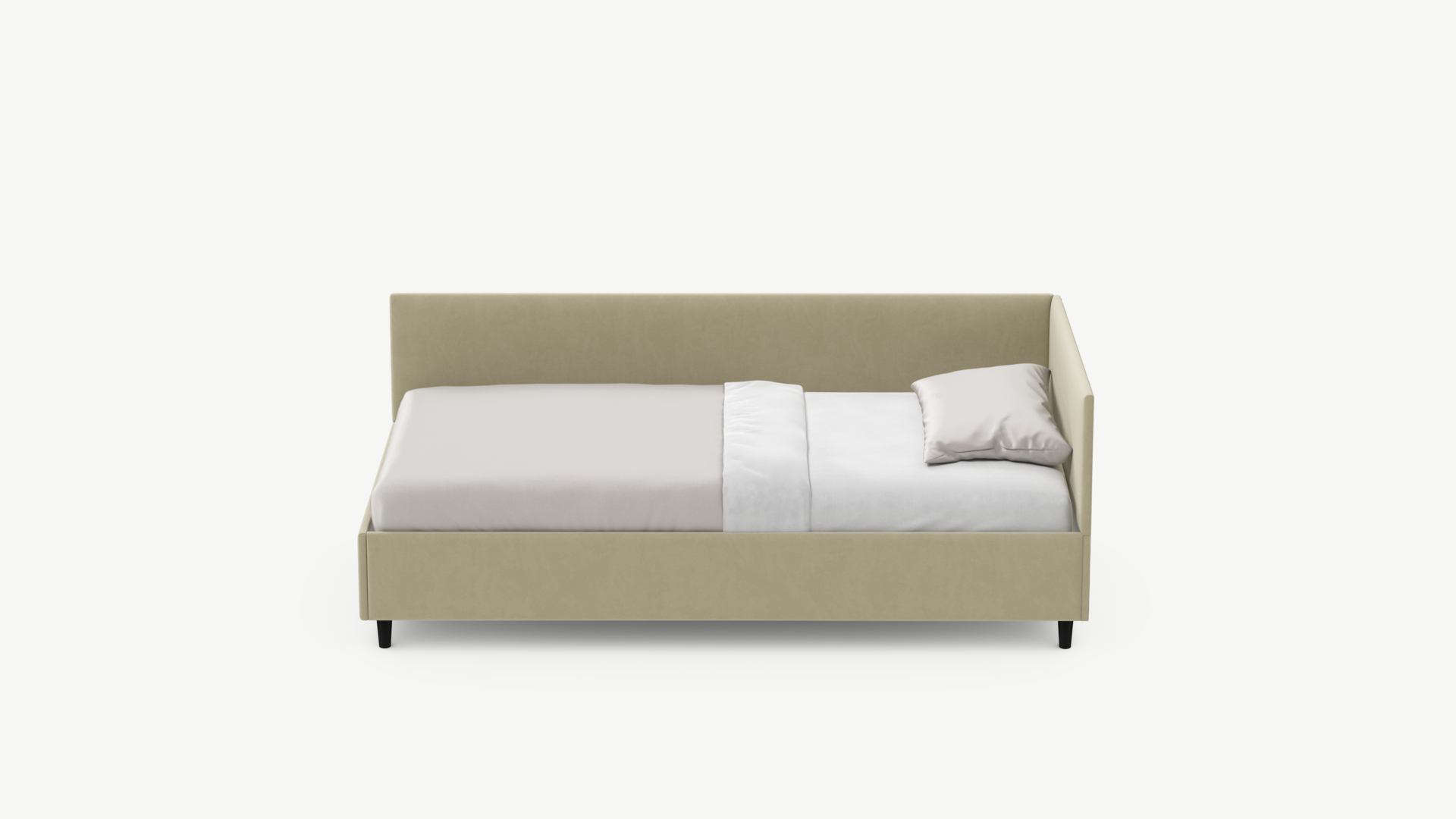 MOON FAMILY 1250 объединяет функциональность и стиль, создавая гармоничное пространство для отдыха и творчества. Кровать доступна в левостороннем и правостороннем исполнении, что позволяет легко адаптировать ее под любые интерьерные особенности.