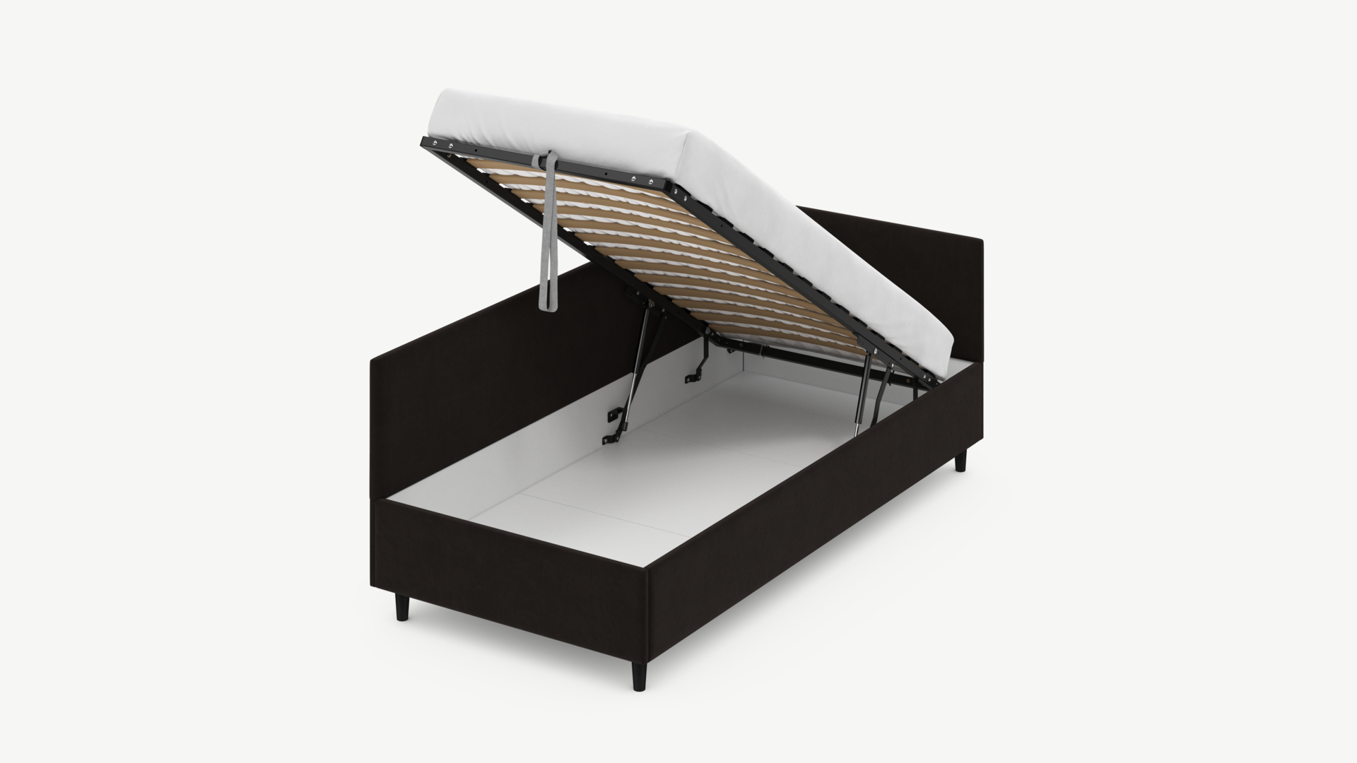 • Скрытая под основанием вместительная емкость без внутренних перегородок позволяет использовать всю площадь подкроватного пространства для хранения вещей.
