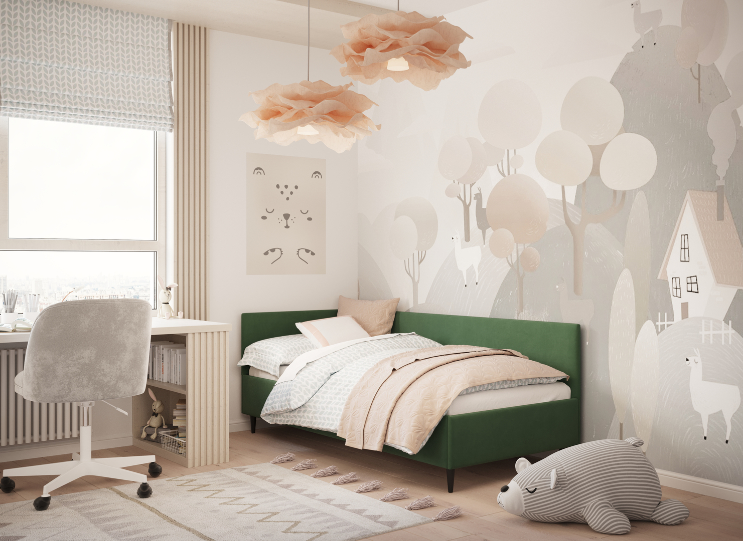 В подростковой комнате эта кровать станет стильным акцентом окружающего интерьера и возьмет на себя роль удобной кушетки для друзей, зашедших в гости.
