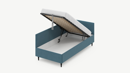 • Скрытая под основанием вместительная емкость без внутренних перегородок позволяет использовать всю площадь подкроватного пространства для хранения вещей.