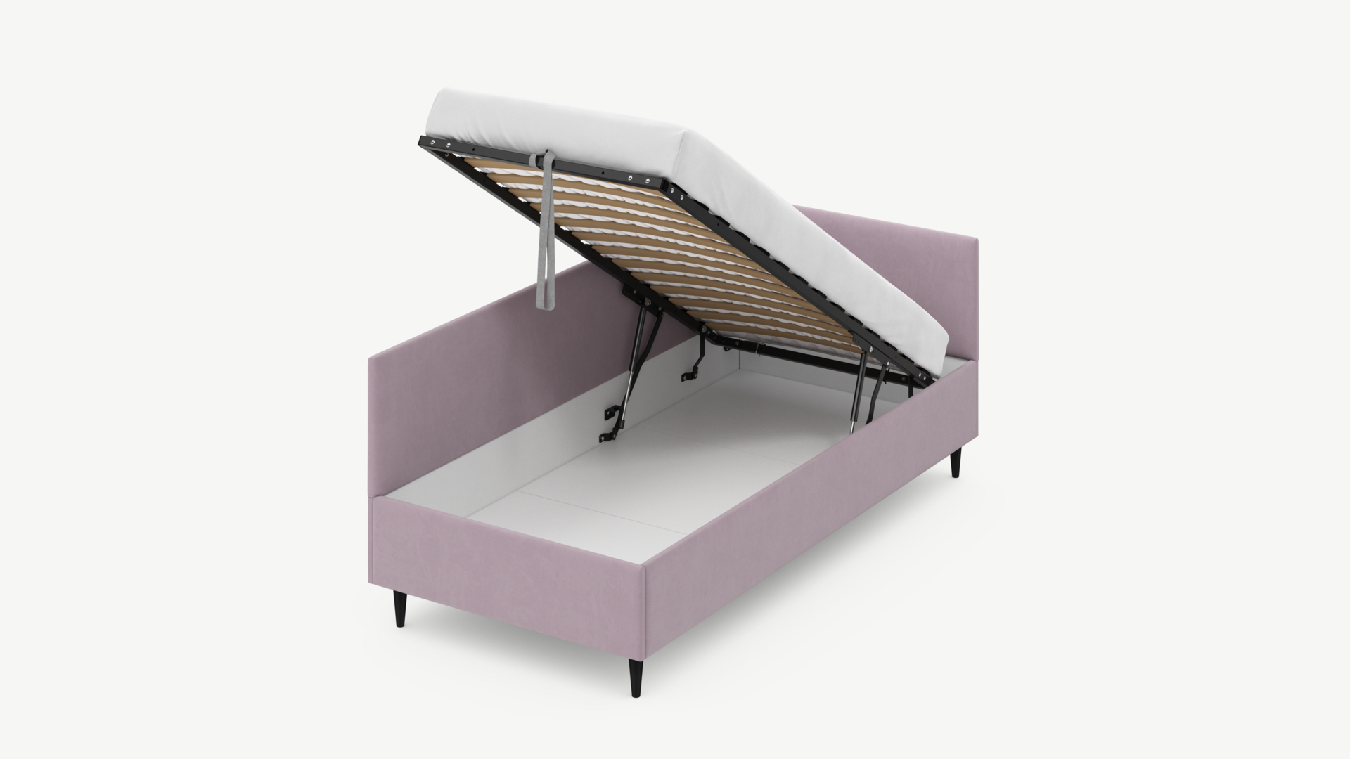 • Скрытая под основанием вместительная емкость без внутренних перегородок позволяет использовать всю площадь подкроватного пространства для хранения вещей.